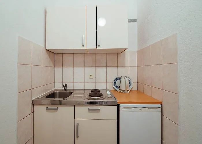 Dotato di servizi di self-catering come una cucina in comune, l'Apartments Pezo - Studio Apartment Tina 1 assicura agli ospiti una zona pranzo per gustare i propri pasti. La fermata dell'autobus Baska Voda è a circa 10 minuti a piedi dall'appartamento.